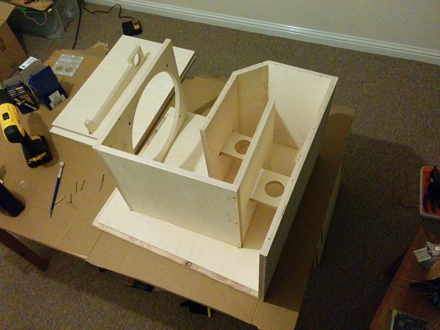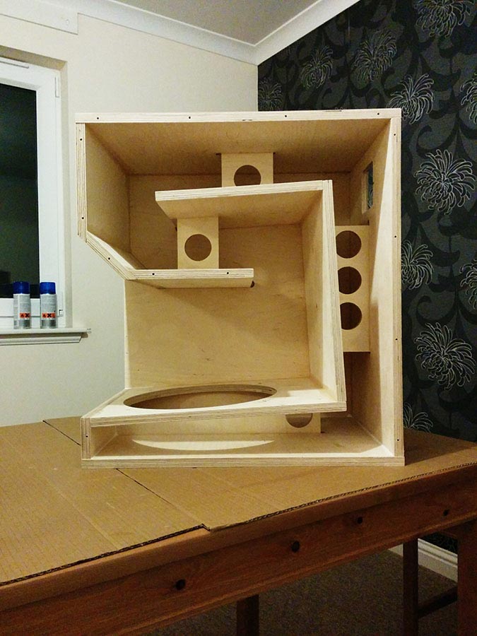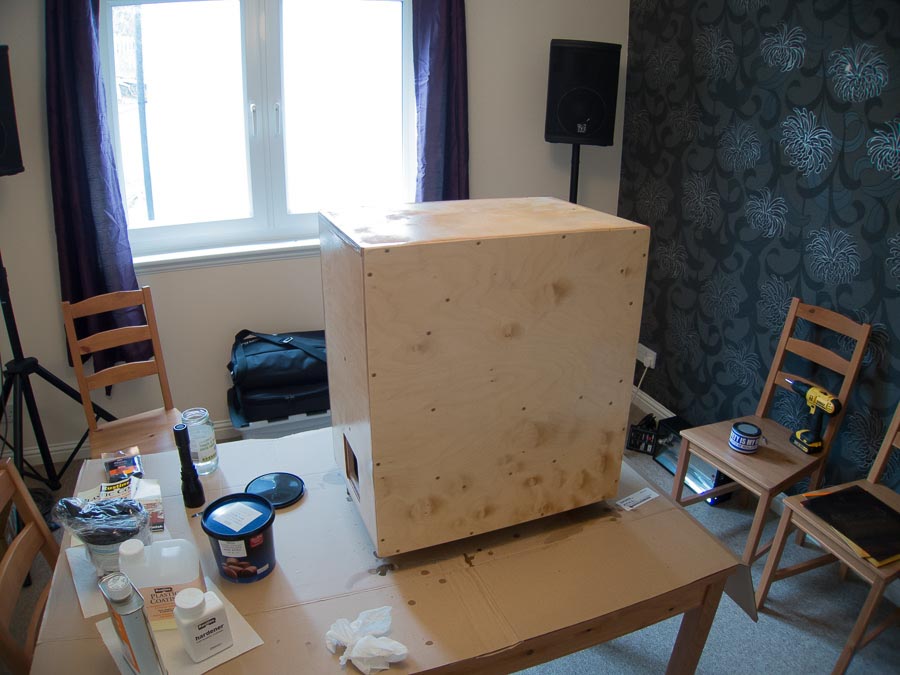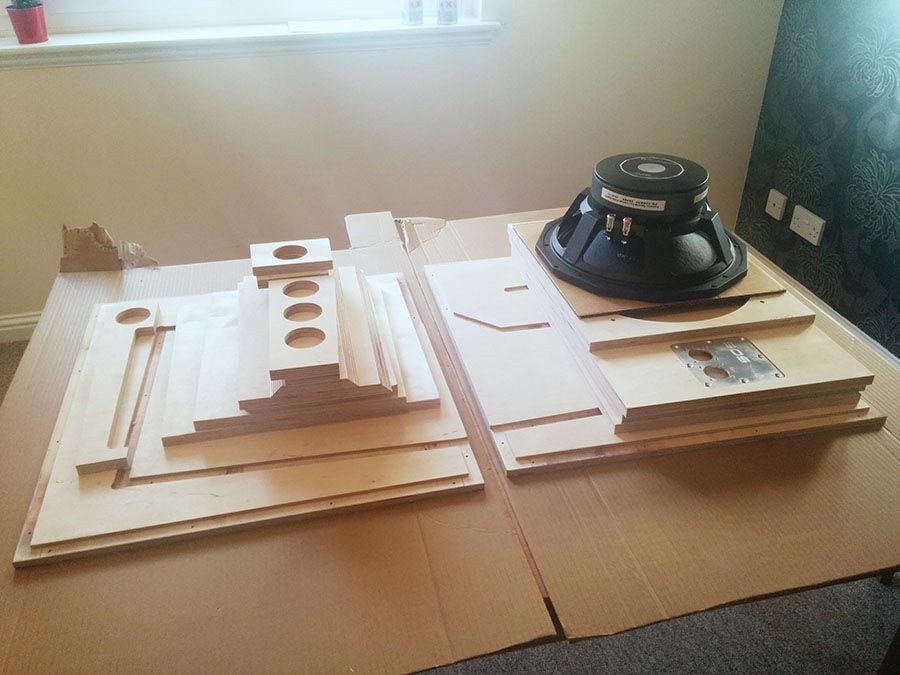 The wood was CNC cut & rebated by a UK outfit I found via the SpeakerPlans forums. I then drilled pilot holes through the rebates for an easy screw & glue assembly. Finished with a formaldehyde-based plastic coating which was very nasty stuff to work with. Grille from Markie, also of SpeakerPlans fame.