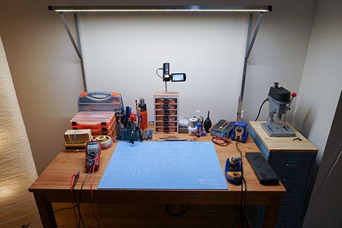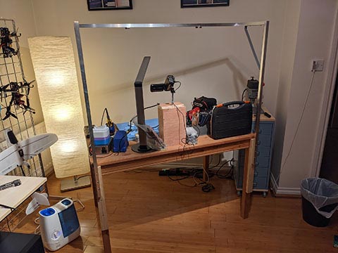 A proper overhead light for my workbench, using 20mm aluminium box section, shelf brackets & 24V 2835 LED tape.