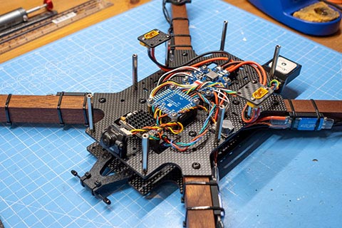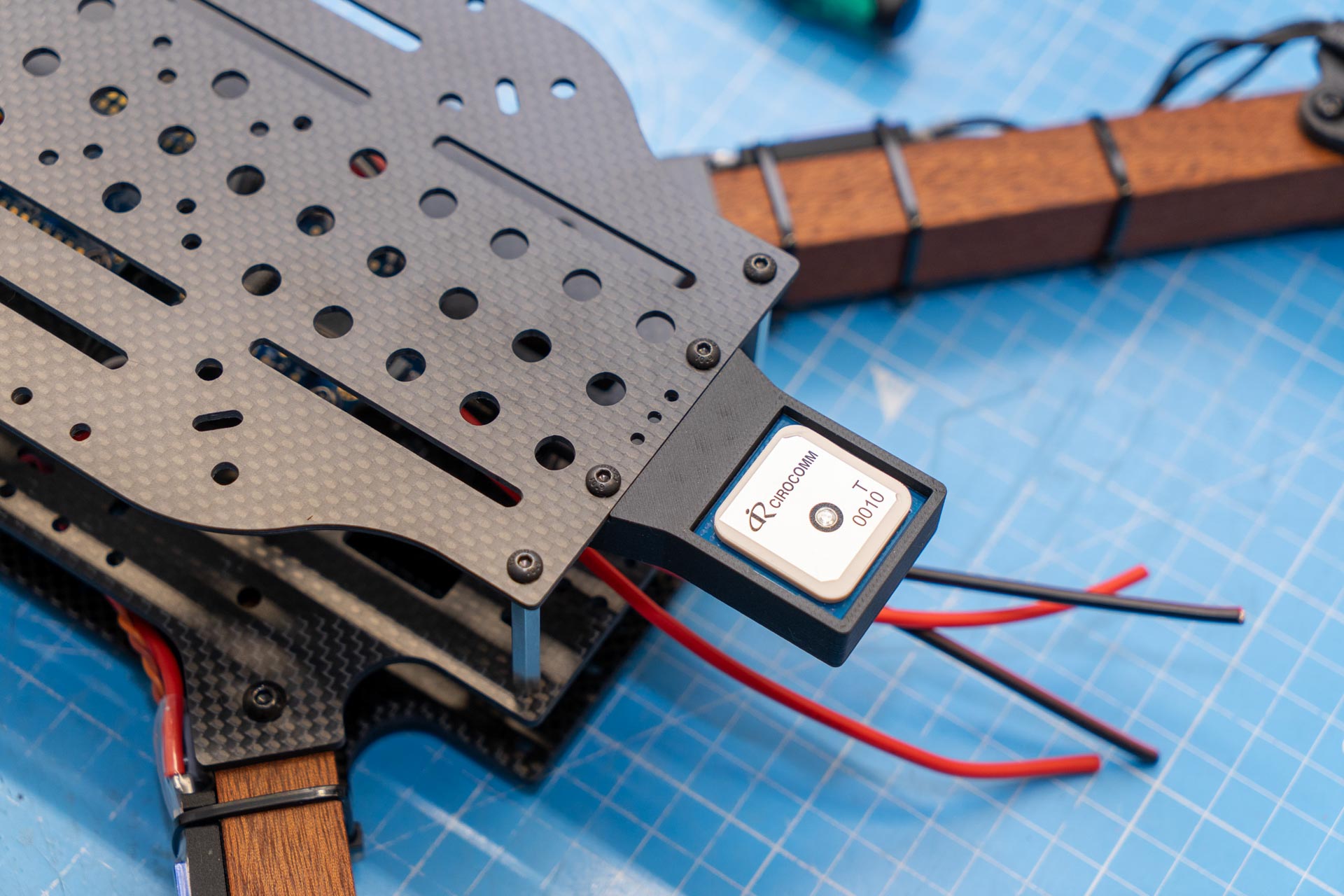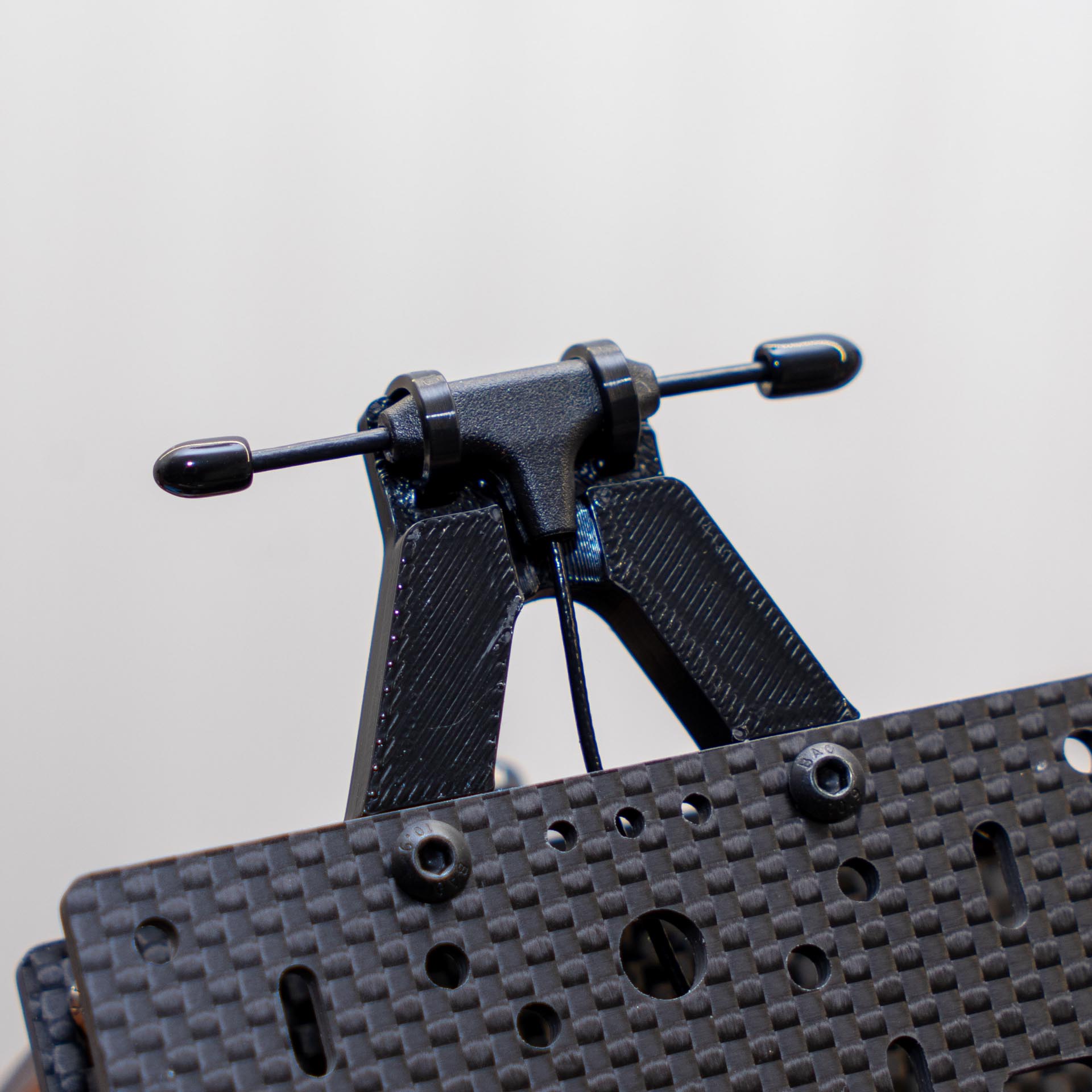 While I really liked the look of my original Macroquad design, I never had much use for the length of the frame while simultaneously the width wasn't quite enough to mount four 21700 cells side by side. So for this new version I both shortened & fattened the carbon parts.