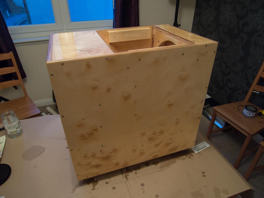 The wood was CNC cut & rebated by a UK outfit I found via the SpeakerPlans forums. I then drilled pilot holes through the rebates for an easy screw & glue assembly. Finished with a formaldehyde-based plastic coating which was very nasty stuff to work with. Grille from Markie, also of SpeakerPlans fame.