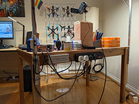 A proper overhead light for my workbench, using 20mm aluminium box section, shelf brackets & 24V 2835 LED tape.