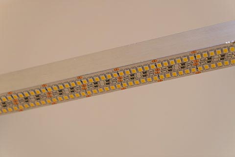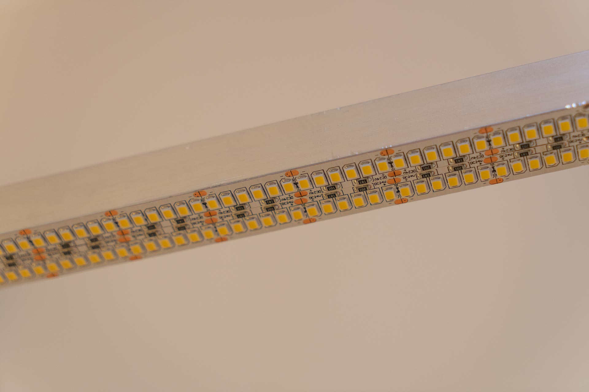 Originally built to hold a 240V LED batten which flickered badly, the 20mm box section is slightly overkill for the weight of the LED tape but perfectly fits two strips & provides good heatsinking.